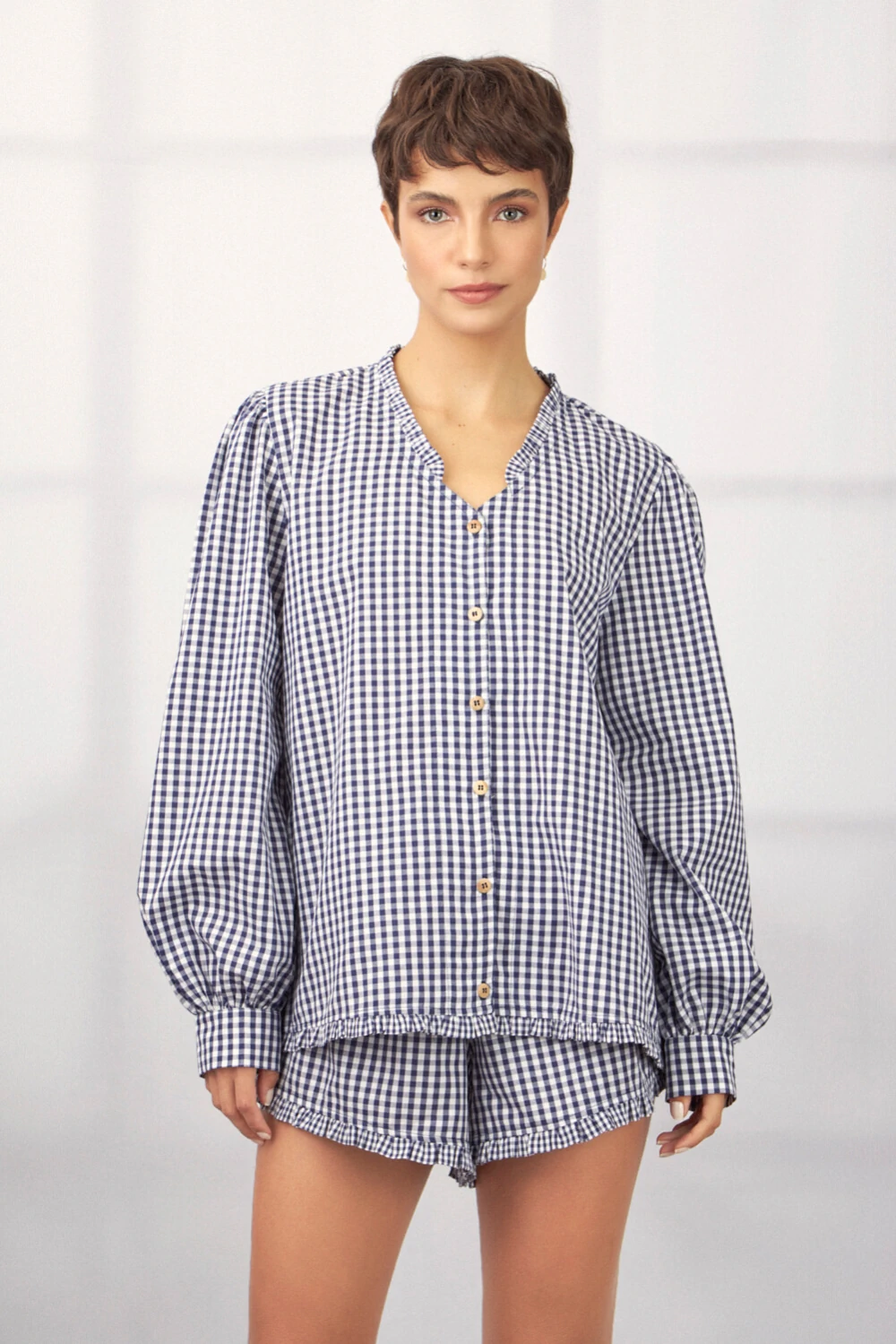 Conjunto Tulipa - Camisa e Short Xadrez Azul Marinho